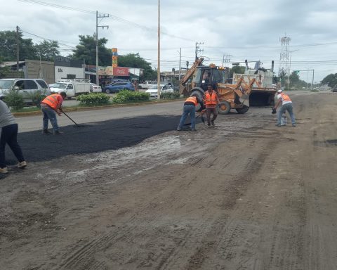 GOBIERNO DE BAHÍA NO PARA, TRABAJA BACHEO EN EL CRUCERO DE EL MANGUITO.