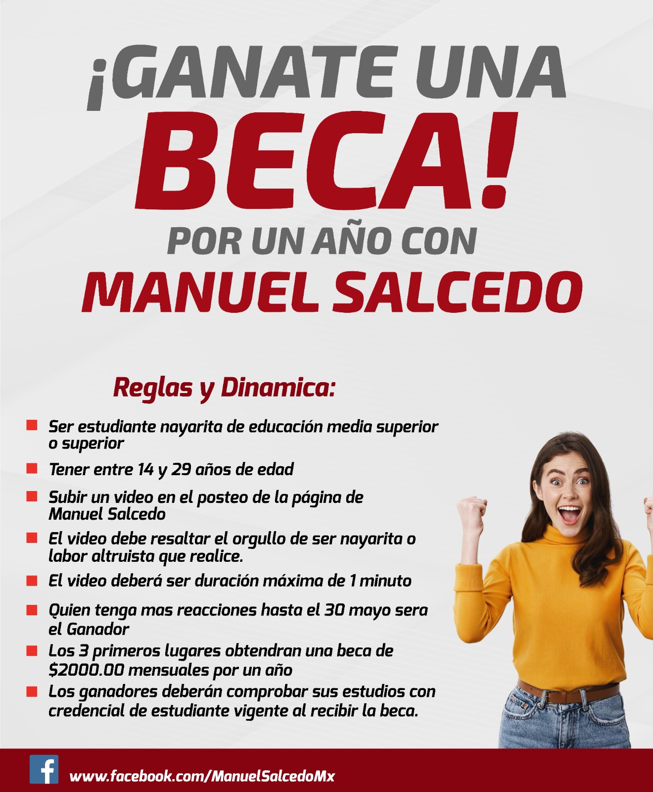 El Alcalde de Acaponeta Manuel Salcedo otorgará una beca de dos mil pesos mensuales por un año a un estudiante. El plazo para ganarla vence el día 30 de Mayo.