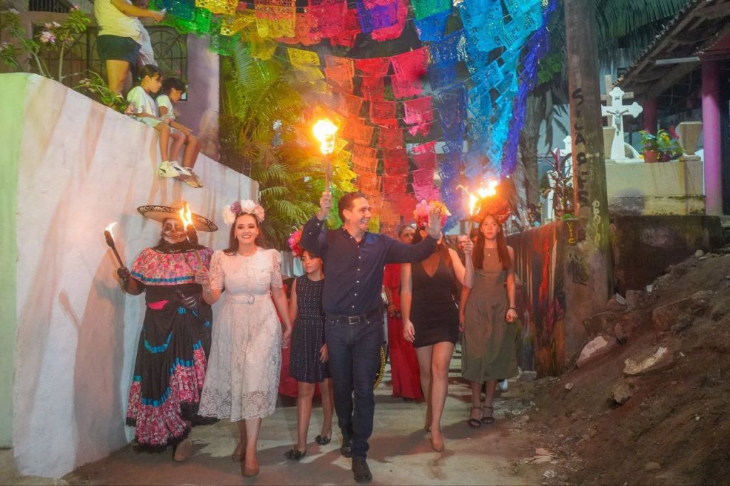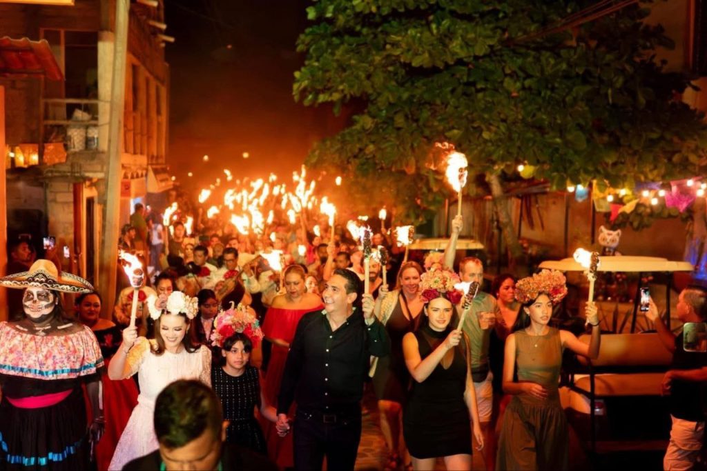 El presidente municipal de Bahía de Banderas, Héctor Santana, celebró el Festival de Día de Muertos con un espectacular desfile de catrinas y catrines, acompañado de impresionantes procesiones en las comunidades de San Pancho y Sayulita.