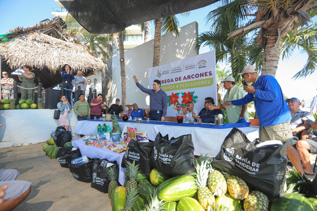 El presidente municipal de Bahía de Banderas, Héctor Santana, encabezó la entrega de 260 arcones navideños a pescadores y ostioneros del municipio, esto para fortalecer la economía familiar de este importante sector productivo.
