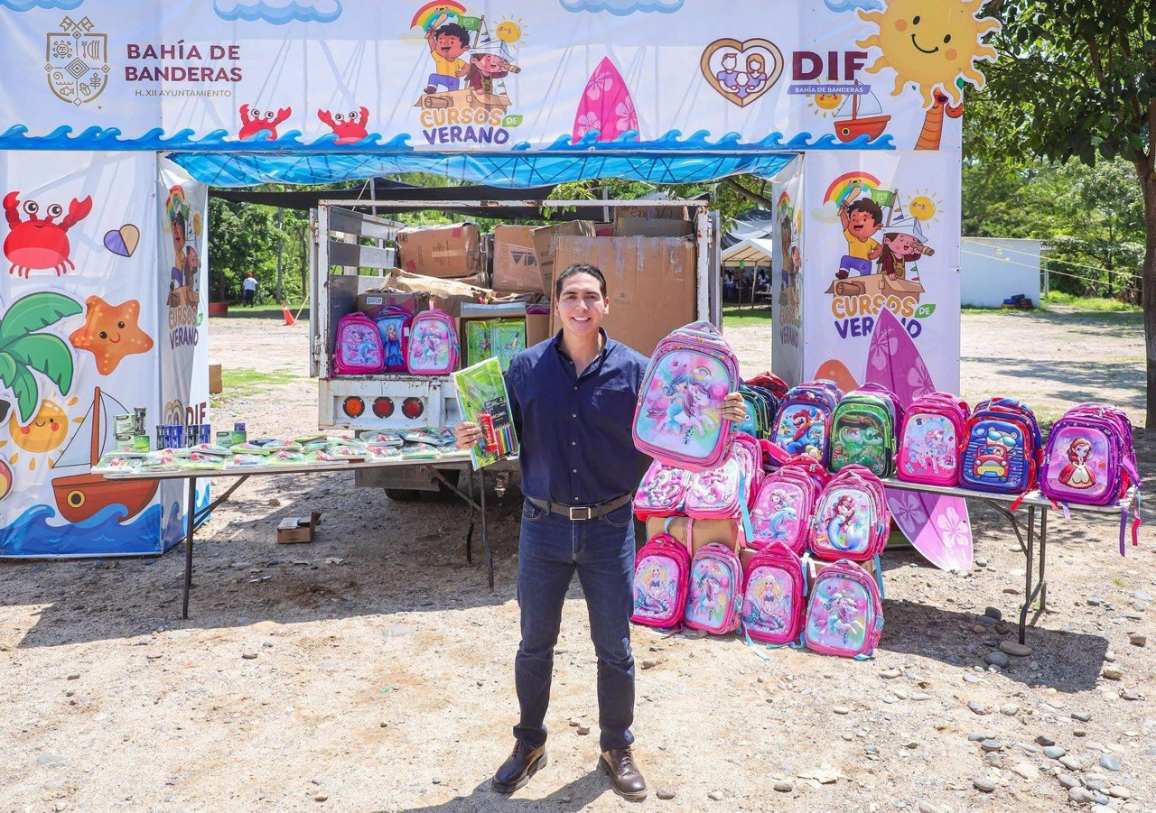 El presidente municipal de Bahía de Banderas, Héctor Santana, anunció el inicio del programa de entrega de mochilas y útiles escolares dirigido a niñas y niños que los necesiten, con el propósito de apoyar la economía de las familias del municipio.