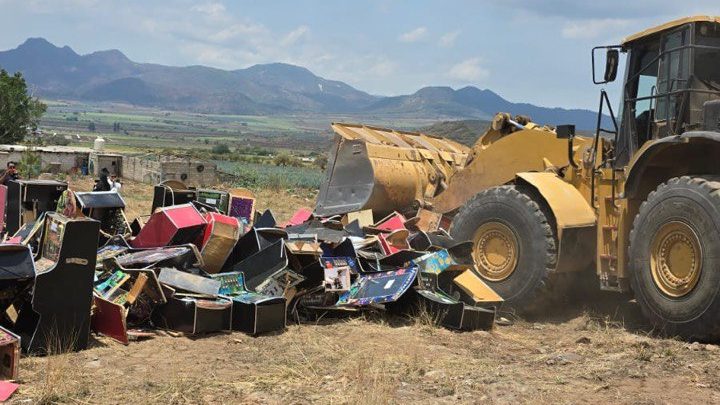 Entre los 102 objetos del delito, 77 eran máquinas de las denominadas tragamonedas y el resto chalecos tácticos, camisolas y mochilas.