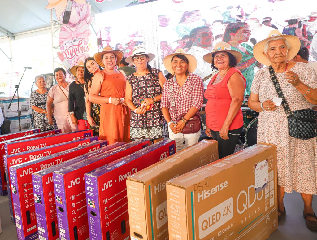 Además, se entregaron más de mil regalos entre las asistentes, incluyendo más de 100 pantallas, 50 colchones, 20 lavadoras, 10 refrigeradores, 10 estufas, 10 aires acondicionados, 5 salas, 5 comedores y 3 recámaras equipadas. Las asistentes disfrutaron de comida, bebida, música en vivo y shows artísticos.