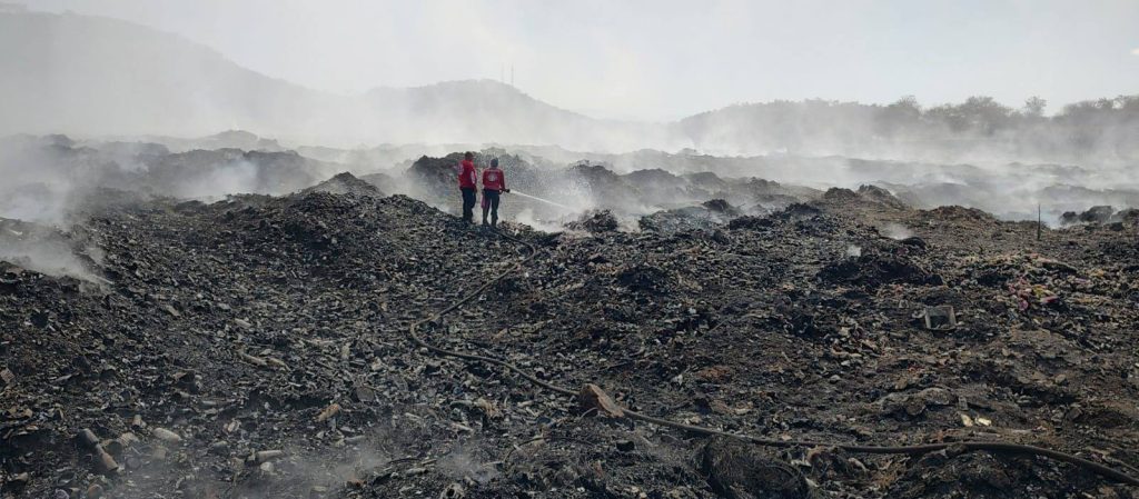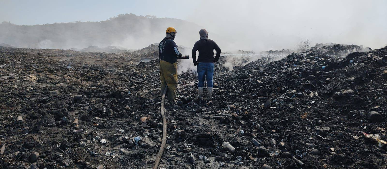 Gobierno de Nayarit mantiene acciones coordinadas para sofocar incendio en relleno sanitario de Acaponeta.