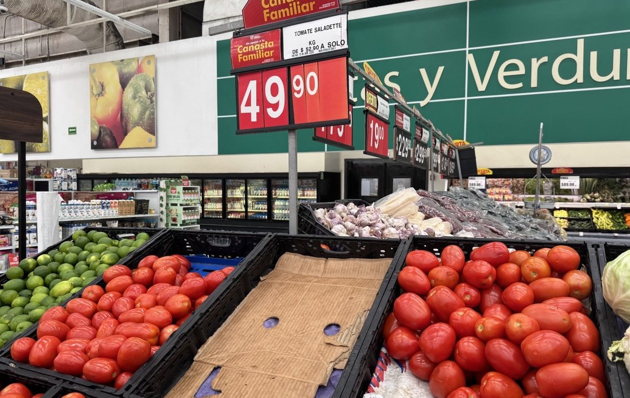 En mercados y centrales de abasto, el kilo de jitomate que antes de Semana Santa se vendía en 18 pesos, ahora alcanza entre 30 y 35 pesos, mientras que en centros comerciales llega hasta los 49 pesos.