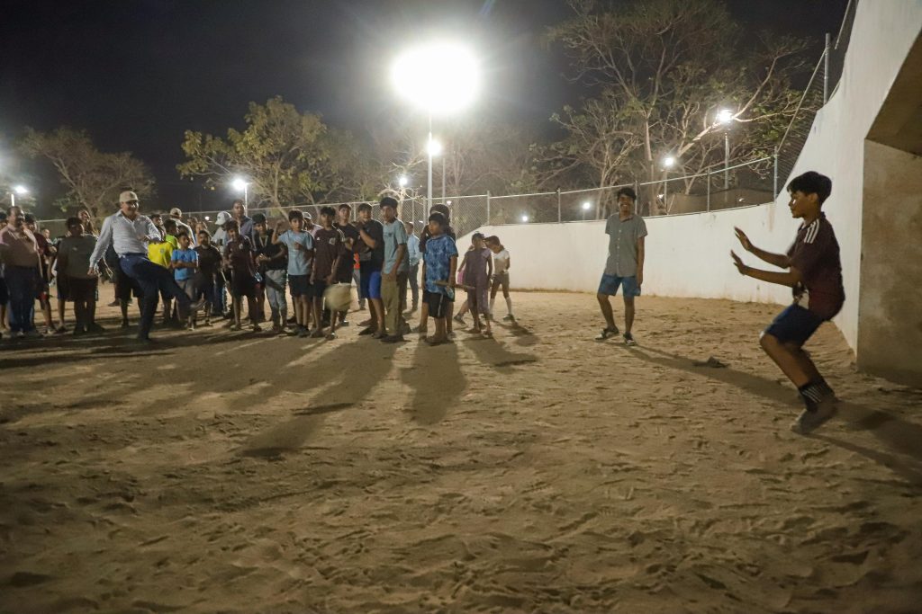 Cumpliendo el compromiso de dignificar las colonias de Bahía de Banderas, el presidente municipal Héctor Santana encabezó el banderazo de arranque para la rehabilitación de la cancha de fútbol rápido en el fraccionamiento Jardines del Sol, en San José del Valle.