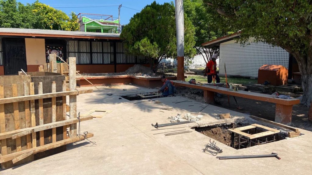 Manuel Salcedo recorrió la obra del domo que se edifica en la escuela Labor y Constancia, en Acaponeta. Con esta nueva techumbre se busca garantizar un espacio más seguro y fresco, donde niñas y niños puedan continuar desarrollando su potencial sin preocuparse por el sol o las inclemencias del tiempo.