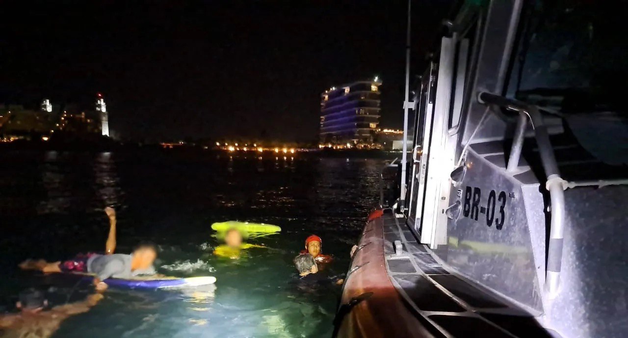 La Marina y elementos de Guardavidas del Estado de Nayarit rescataron a cuatro personas tras el hundimiento de una embarcación en Bahía de Banderas. Jesús Arizmendi, de 54 años, alertó desde la orilla que a un kilómetro mar adentro se encontraban sus tres acompañantes, quienes lograron mantenerse a flote apoyados en una hielera. Con el apoyo de una embarcación tipo Defender de la Armada de México, los tripulantes fueron trasladados al muelle naval, donde recibieron atención médica y se confirmó que se encontraban fuera de peligro.
