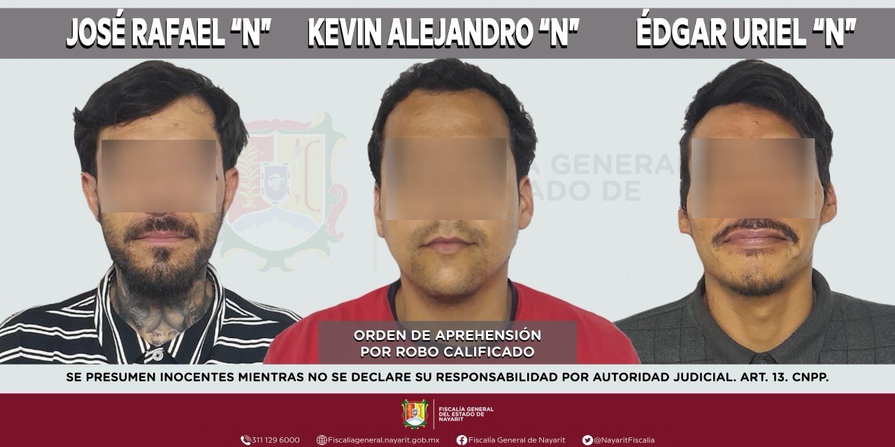 Elementos de la Agencia de Investigación Criminal de Nayarit ejecutaron una orden de aprehensión en la ciudad de Tepic contra José Rafael “N”, Kevin Alejandro “N” y Édgar Uriel “N”, por su presunta participación en hechos que para la ley configuran el delito de robo calificado, cometido en agravio del patrimonio del Ayuntamiento de Tepic.