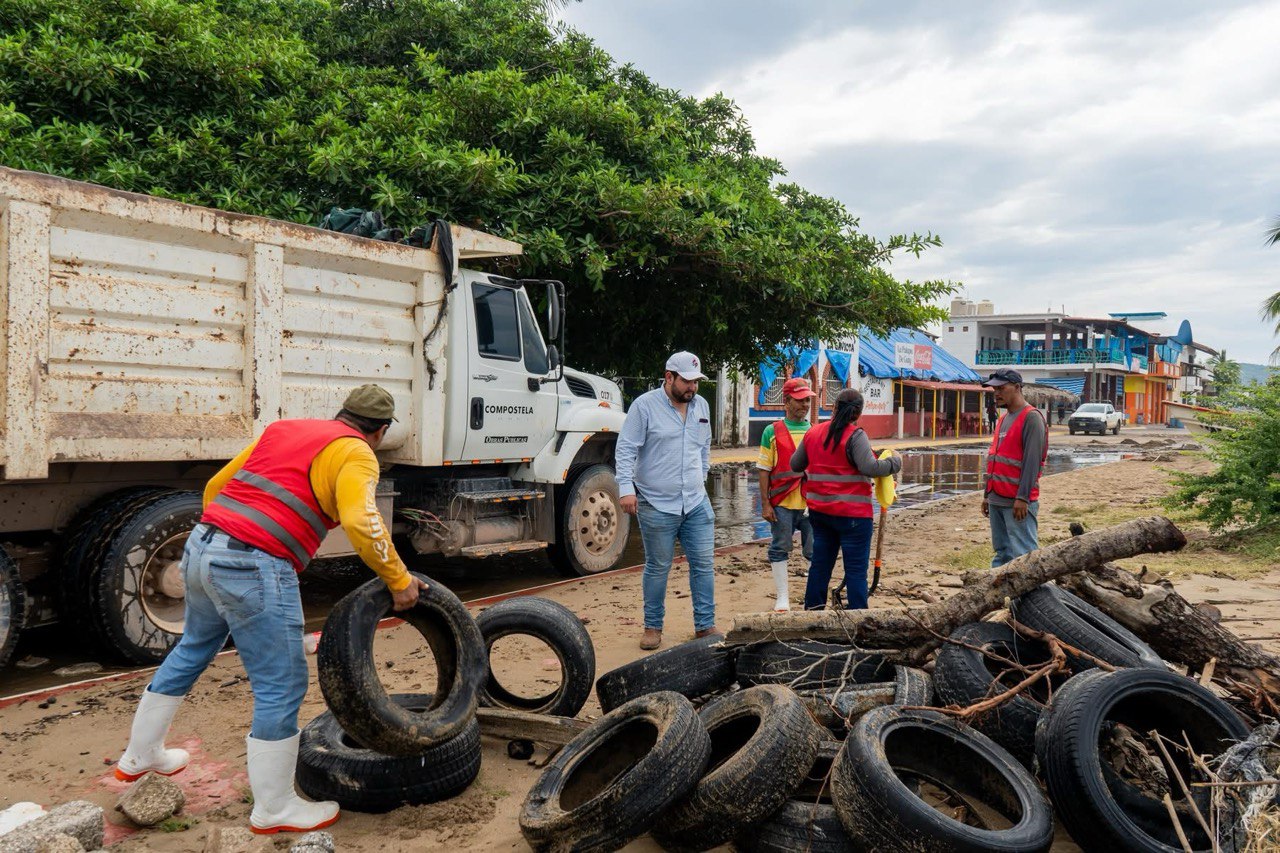 Compostela, Nayarit. Tras las intensas lluvias provocadas por el huracán “Priscila”, cuadrillas de Servicios Públicos del municipio de Compostela llevaron a cabo este jueves una jornada intensiva de limpieza en las playas de Platanitos, Chacala y La Peñita de Jaltemba.