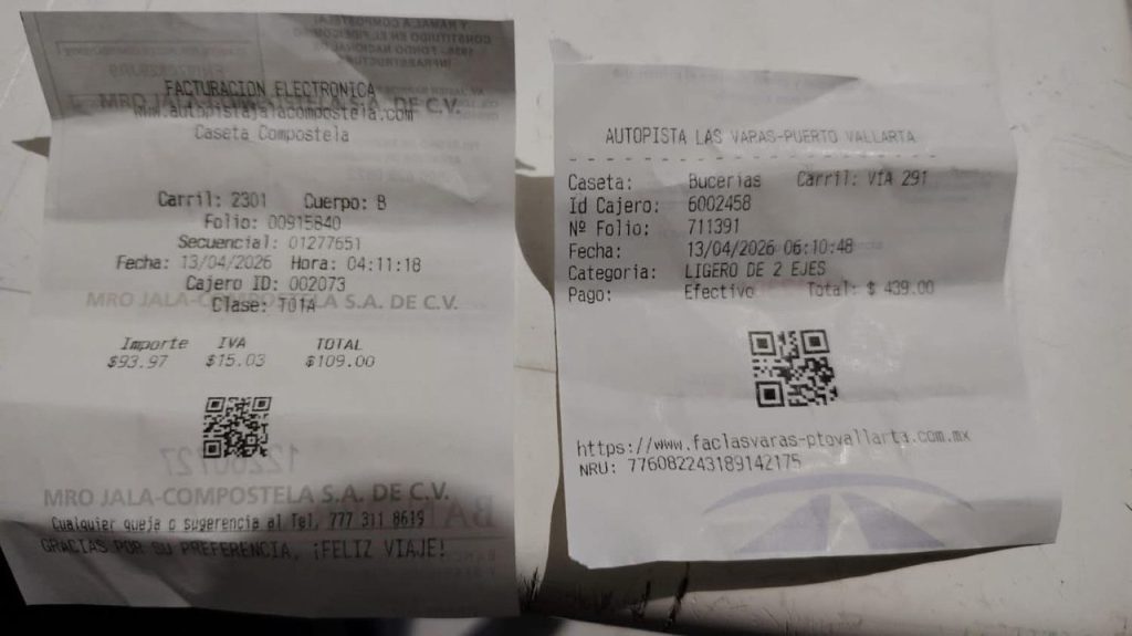 Las autopistas de cuota que conectan a Nayarit y Jalisco han registrado un incremento aproximado del 4.5% en sus tarifas, de acuerdo con reportes compartidos por usuarios en redes sociales. La información fue difundida por Josh Ojeda, representante de la Comisión Nacional de Emergencias (CNE), a través de su cuenta de Facebook, donde mostró recibos que reflejan los nuevos costos.