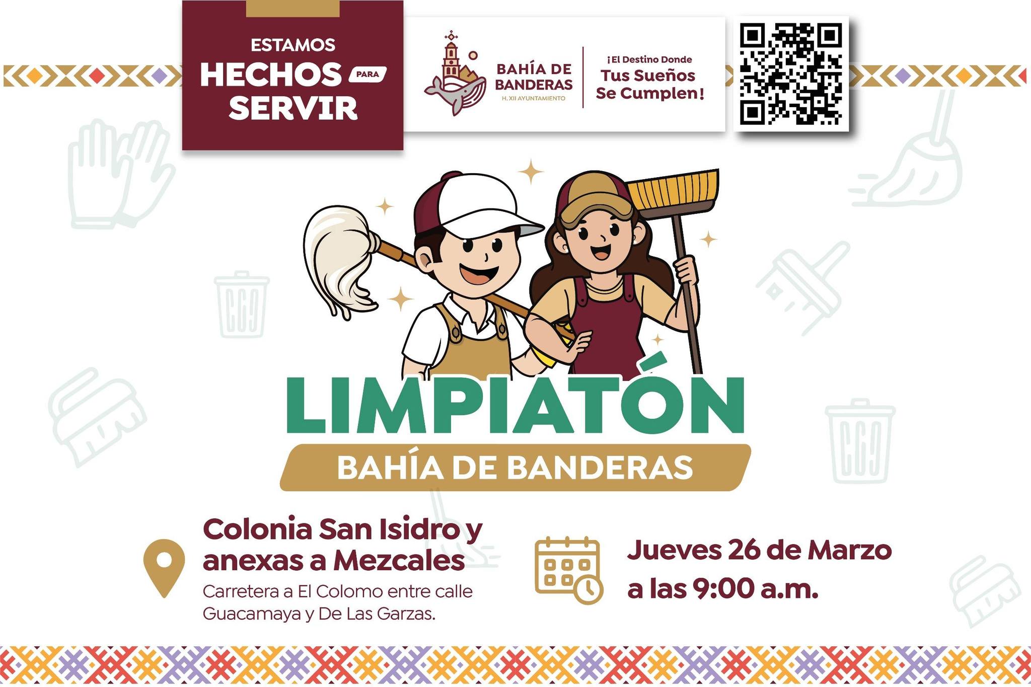 El Gobierno de Bahía de Banderas invita a los vecinos de San Isidro a sumarse al gran Limpiatón, una jornada de limpieza comunitaria que se llevará a cabo este jueves 26 de marzo a las 9:00 a.m.