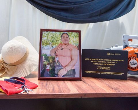 El gobernador Miguel Ángel Navarro acompañó a la comunidad de la Secundaria Técnica No. 41, en Rosamorada, para rendir homenaje a dos grandes mujeres: la maestra Yolanda Leticia Hernández y la señora Irma Leticia Díaz, quien se desempeñaba como intendente del plantel